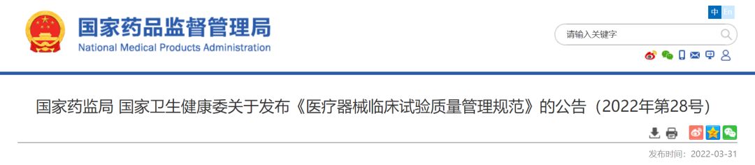 為深化醫(yī)療器械審評審批制度改革,加強(qiáng)醫(yī)療器械臨床試驗管理,根據(jù)《醫(yī)療器械監(jiān)督管理條例》(國務(wù)院令第739號)及《醫(yī)療器械注冊與備案管理辦法》(市場監(jiān)管總局令第47號)、《體外診斷試劑注冊與備案管理辦法》(市場監(jiān)管總局令第48號),國家藥品監(jiān)督管理局會同國家衛(wèi)生健康委員會組織修訂了《醫(yī)療器械臨床試驗質(zhì)量管理規(guī)范》,現(xiàn)予發(fā)布,自2022年5月1日起施行。