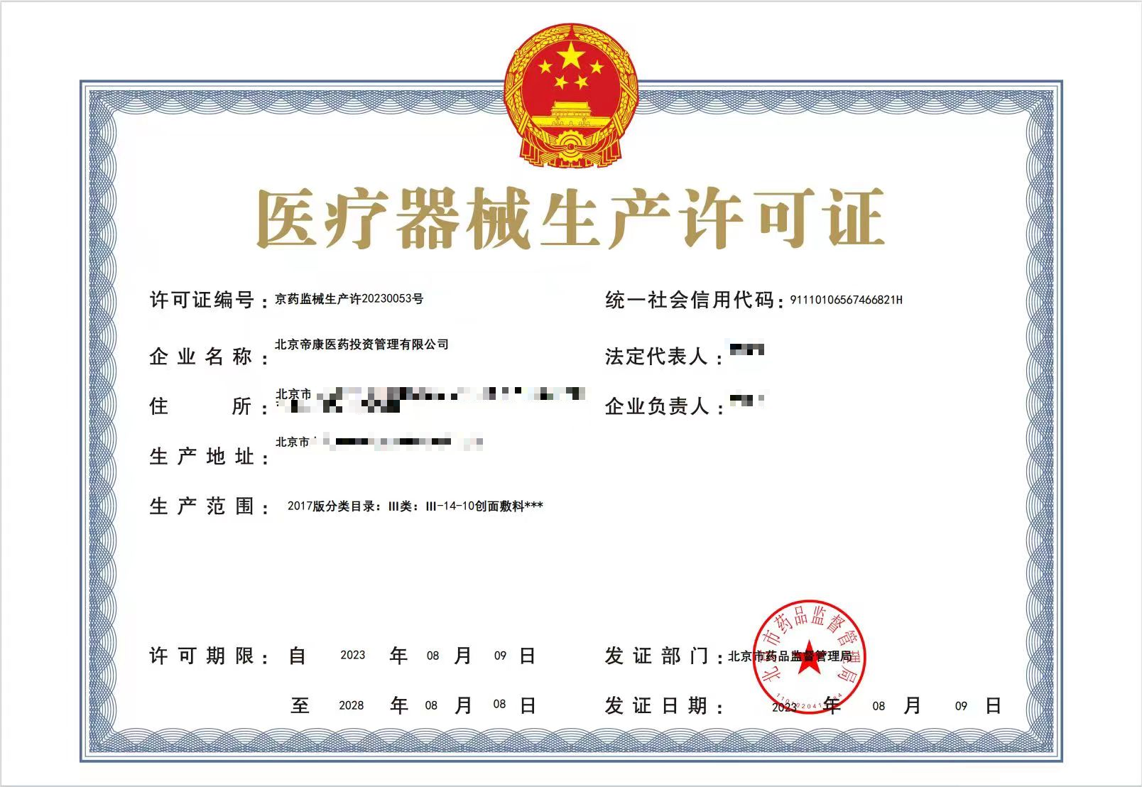 奧泰康北京CDMO中心獲得北京市藥品監(jiān)督管理局頒發(fā)的「創(chuàng)面敷料三類生產(chǎn)許可證」???