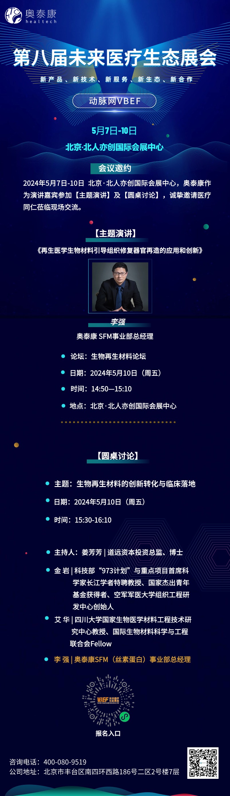 ??動(dòng)脈網(wǎng)·VBEF——第八屆未來(lái)醫(yī)療生態(tài)展會(huì),奧泰康·再生醫(yī)學(xué)生物材料演講???5月10日,與您相約??北京·北人亦創(chuàng)國(guó)際會(huì)展中心