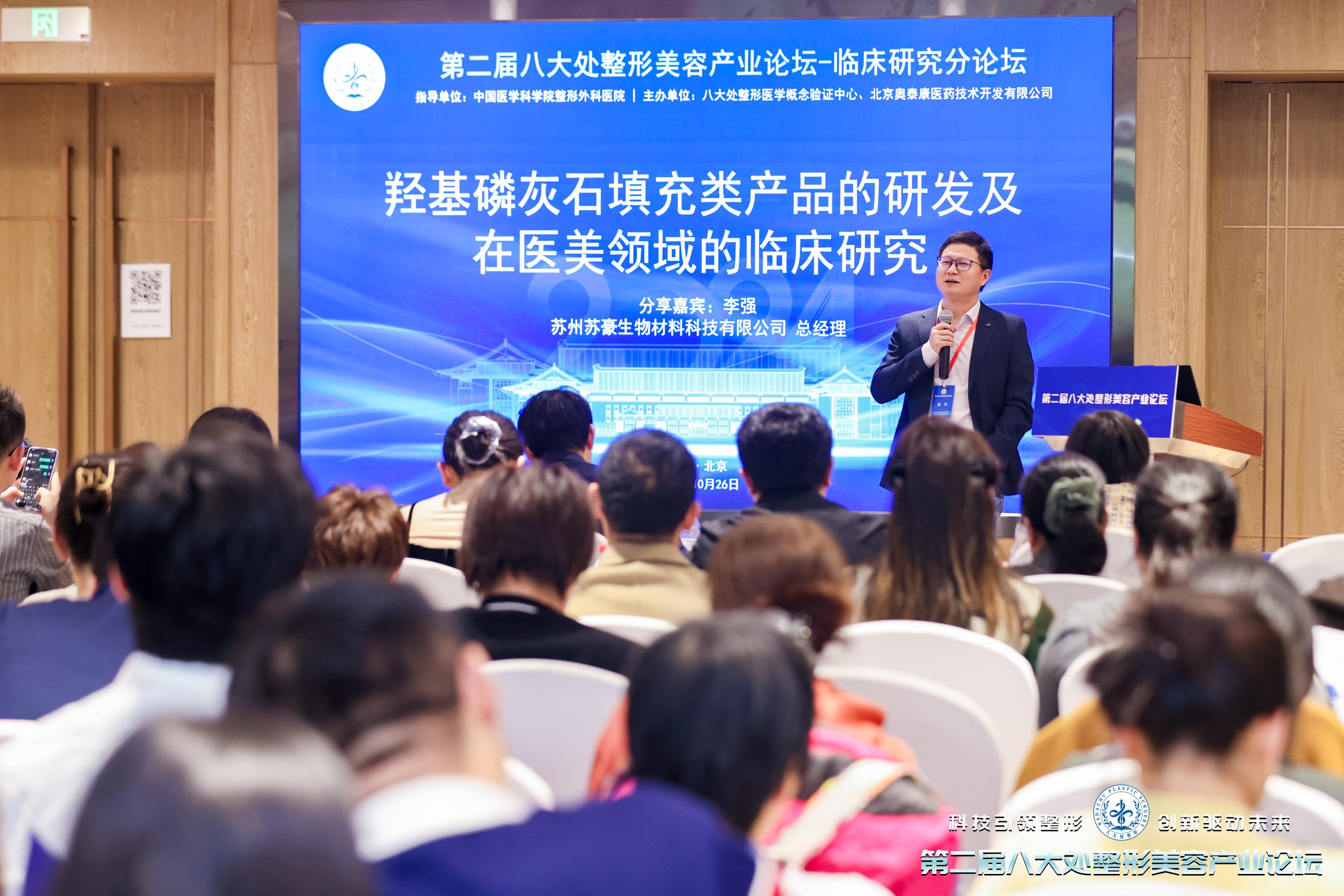 蘇州蘇豪生物材料科技有限公司總經(jīng)理李強(qiáng)通過《羥基磷灰石填充類產(chǎn)品的研發(fā)及在醫(yī)美領(lǐng)域的臨床研究》講述了羥基磷灰石的材料特性、工藝制備等,結(jié)合實際案例,闡述了羥基磷灰石的在醫(yī)美填充中的臨床應(yīng)用及未來發(fā)展方向,為行業(yè)提供了實際操作上的指導(dǎo)。