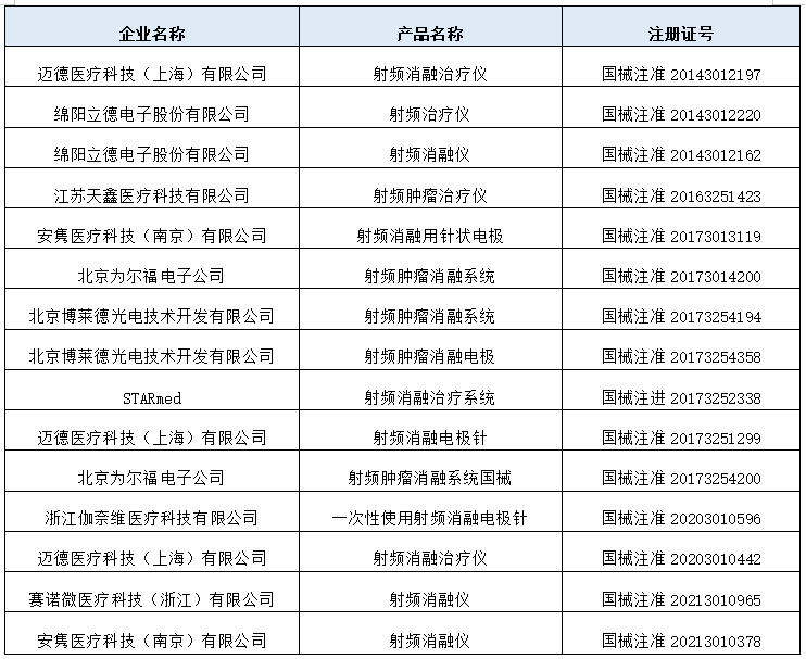目前國內(nèi)已獲批的腫瘤射頻產(chǎn)品(來源:NMPA)