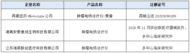 目前國內(nèi)的腫瘤電場產(chǎn)品(來源:NMPA)
