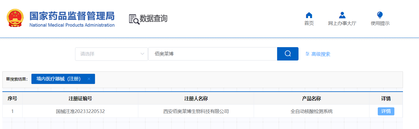 全自動核酸檢測系統(tǒng)獲證——2023年「第10張」三類醫(yī)療器械注冊證???2023年4月24日,經(jīng)國家藥品監(jiān)督管理局公示,西安佰奧萊博生物科技有限公司的“全自動核酸檢測系統(tǒng)”(國械注準20233220532)獲得NMPA批準上市,系2023年奧泰康助力獲得的第10張三類醫(yī)療器械注冊證。