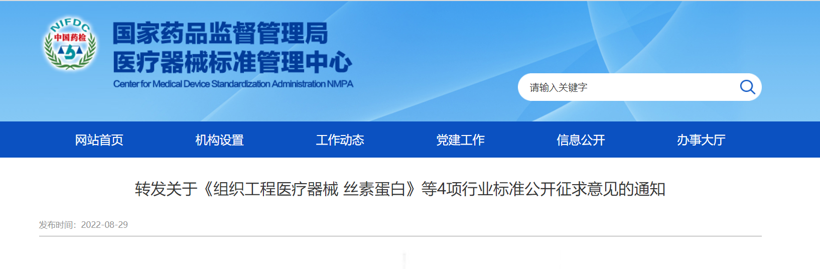 隨著絲素蛋白醫(yī)療器械產(chǎn)品的增加,對(duì)這一材料的生產(chǎn)制備、質(zhì)量控制等提出了要求。相對(duì)于產(chǎn)業(yè)的迅速發(fā)展,絲素蛋白相關(guān)標(biāo)準(zhǔn)在國際國內(nèi)仍處于空白。由于標(biāo)準(zhǔn)的缺乏,各絲素蛋白企業(yè)在企業(yè)標(biāo)準(zhǔn)制定過程中無統(tǒng)一的標(biāo)準(zhǔn)參考依據(jù),限制了絲素蛋白醫(yī)療產(chǎn)業(yè)的高質(zhì)量發(fā)展。目前,為提高絲素蛋白材料的質(zhì)量與安全性,為科學(xué)監(jiān)管提供支撐,由全國外科植入物和矯形器械標(biāo)準(zhǔn)化技術(shù)委員會(huì)組織工程醫(yī)療器械產(chǎn)品分技術(shù)委員會(huì)歸口的《組織工程醫(yī)療器械絲素蛋白》已形成征求意見稿[5],并于2022年8月23日-2022年10月24日期間公開征求意見。