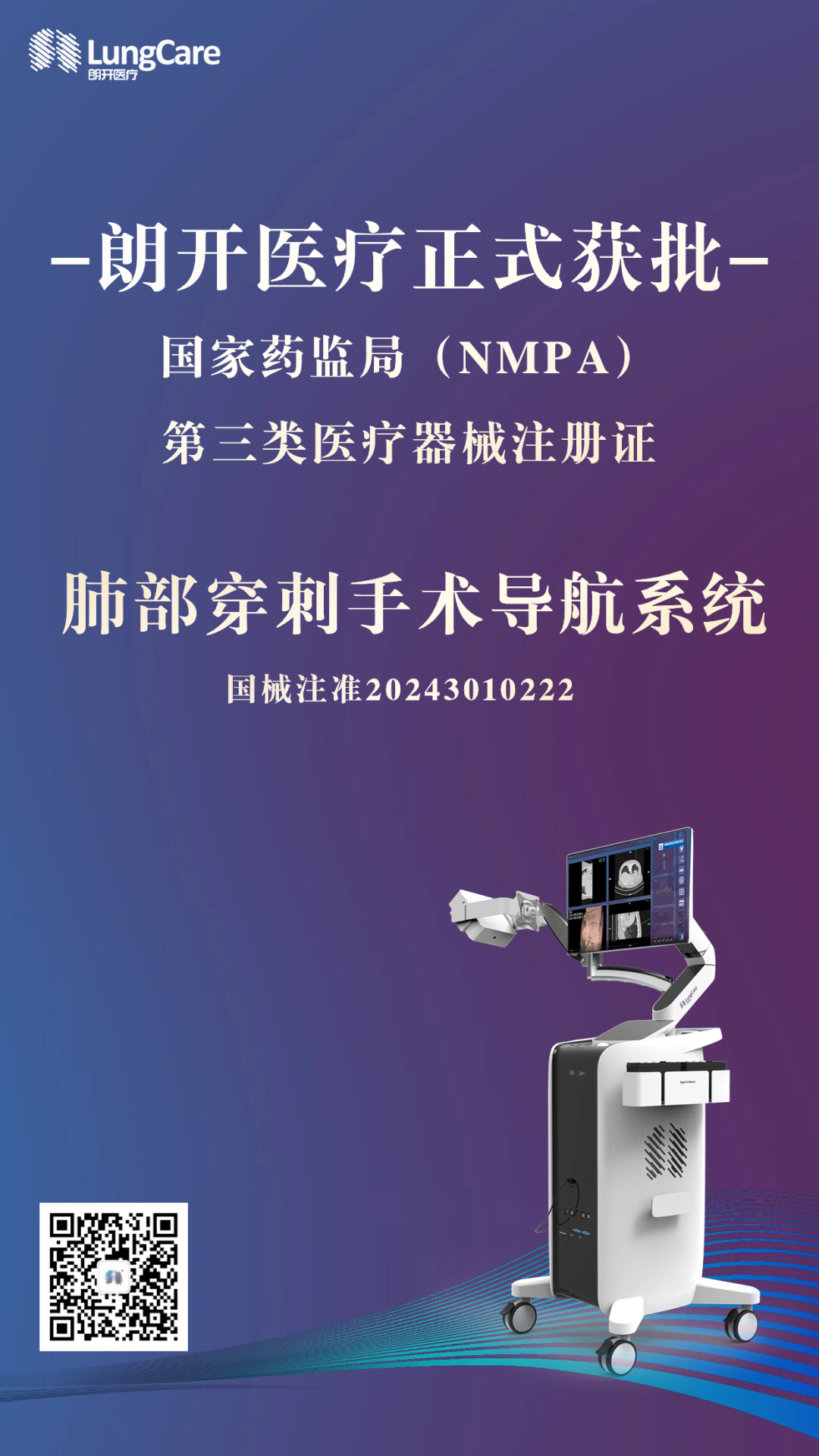 2024年1月31日,經(jīng)國家藥品監(jiān)督管理局公示,蘇州朗開醫(yī)療技術(shù)有限公司自主研發(fā)的肺部穿刺手術(shù)導航系統(tǒng)(國械注準20243010222)獲得NMPA批準上市,奧泰康助力本項目注冊申報服務,系2024年奧泰康助力獲得的首張三類醫(yī)療器械注冊證。