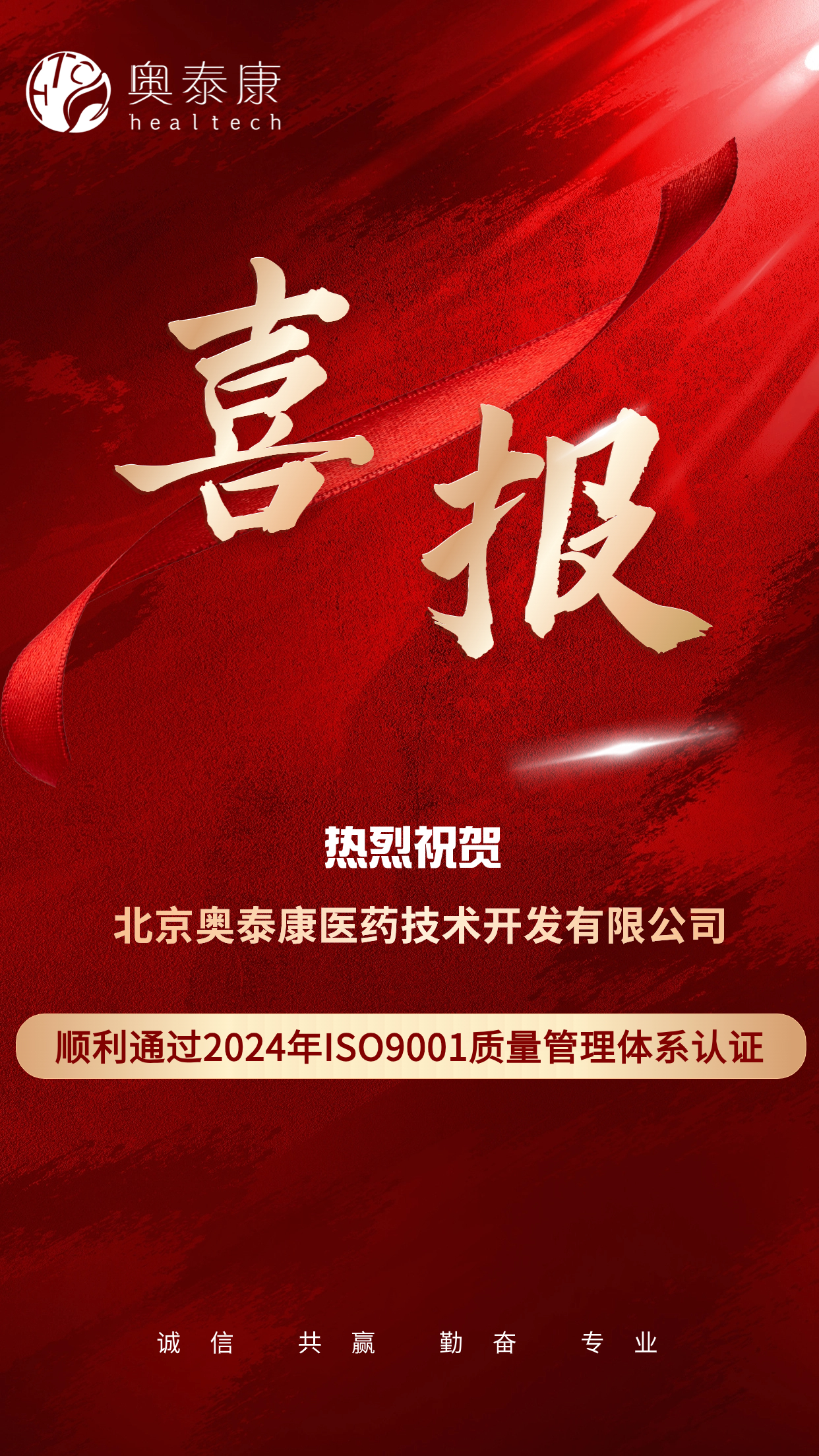 奧泰康通過2024年ISO9001質(zhì)量管理體系年審認證,我們將持續(xù)推進質(zhì)量建設(shè),提升綜合實力,保證在研臨床項目高質(zhì)量、高效率運行