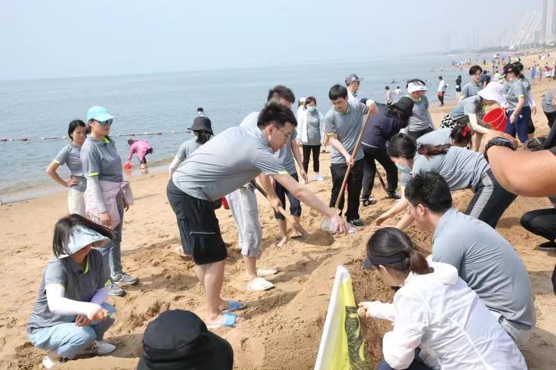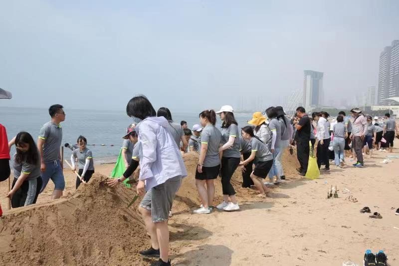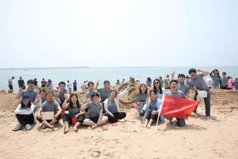 海邊沙灘,全體奧泰康人共同構(gòu)筑了一座長(zhǎng)40余米、高1米的沙雕長(zhǎng)城,每組隊(duì)員分工明確—鏟沙、運(yùn)水、堆砌,聚沙成塔,經(jīng)過兩小時(shí)的共同搭建,眾志成城,一座巍峨壯闊的沙雕長(zhǎng)城矗立在沙灘上。
