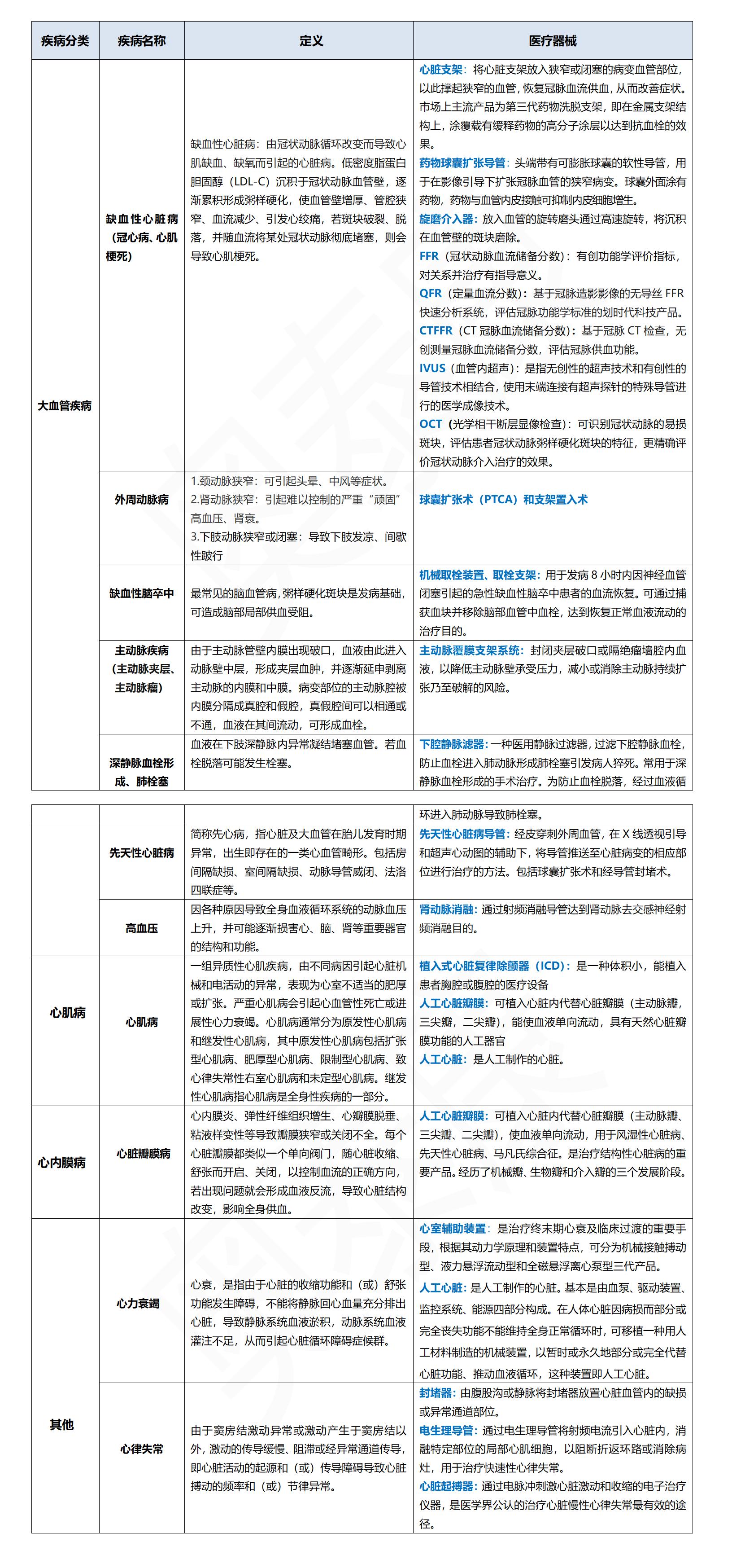 心血管疾病類別及對應(yīng)用醫(yī)療器械